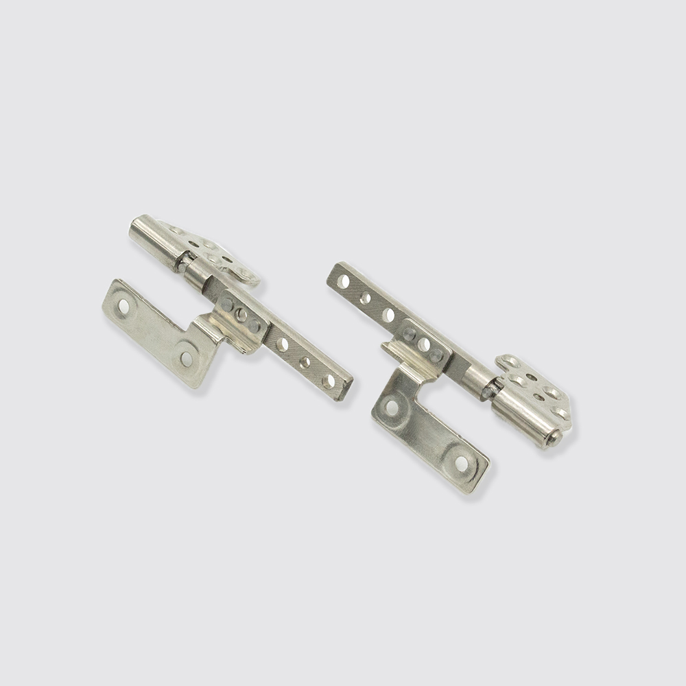 笔记本电脑转轴由两个钣金件一个轴组成,外表镀镍,采用包圆+压铆结构,使用进口SK7材质,带限位结构。轴径5MM,结构小巧,适用各类轻薄笔记本。