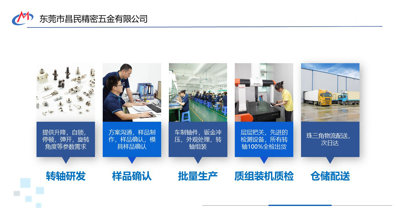 多宝精密注是东莞一家研发、生产各类笔记本电脑转轴、DV转轴、LCD转轴、电话转轴、手机平板转轴、台灯转轴、学习机器转轴、医疗设备转轴、一体机转轴、精密数控车削件、冲压件等五金产品的转轴生产厂家。多宝的转轴产品已广泛应用于笔记本电脑、平板手机皮套、汽车、台灯照明、无人机、收音机、耳机、医疗、户外设备、军工等各个领域。公司已通过ISO9001:2015质量认证体系,以合理化、标准化、系统化、自动化为标准作业,为客户提供优秀的产品和良好的服务。如果您有转轴定制的需求,以上是多宝的定制流程。