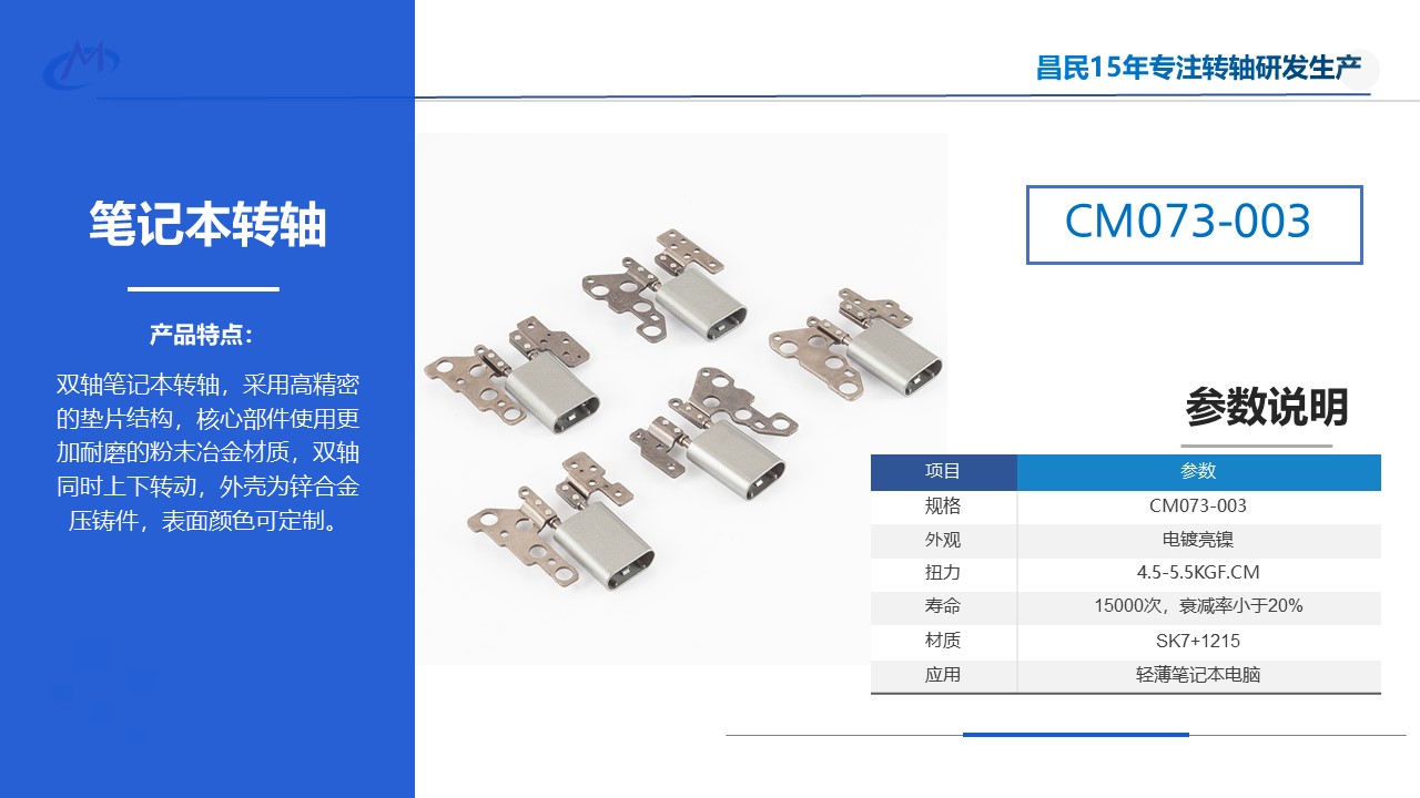 手机:133-4266-6888随着笔记本电脑更轻、更薄的发展,转轴的结构设计也在不断变化。笔电转轴是典型的活动部件,既要承受弯矩又要承受扭矩,对开合体验起了决定性的影响,从隐藏在笔记本电脑中的经典垫圈结构转轴到现在带壳的齿轮结构转轴,笔记本电脑在翻转时可以灵活地切换角度,更便于携带。目前我们经常可以看到带壳的笔记本电脑转轴,这样的结构设计有有什么功能和优势呢?今天多宝小编就带大家了解一下。